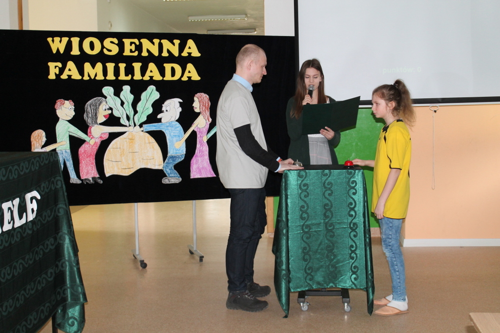Familiadę prowadziła Julia Sokołowska uczennica klasy III oddziału gimnazjalnego. Za przygotowanie apelu odpowiedzialna była Pani Małgorzata Sztandera i Pan Zbigniew Wójcicki.