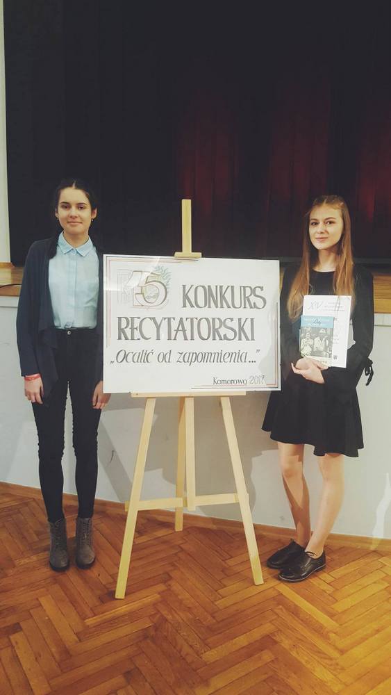 W 15 powiatowym konkursie recytatorskim "Ocalić od zapomnienia" uczennica klasy III gimnazjum, Daria Wójcicka zdobyła III miejsce recytując utwór Bolesława Leśmiana "Urszula Kochanowska". W konkursie wzięła udział także uczennica klasy II gimnazjum, Katarzyna Socik, która recytowała wiersz Bolesława Leśmiana "Zmory wiosenne". Do konkursu przygotowywała uczennice nauczycielka języka polskiego Pani Anna Pieńkos.