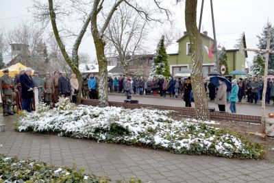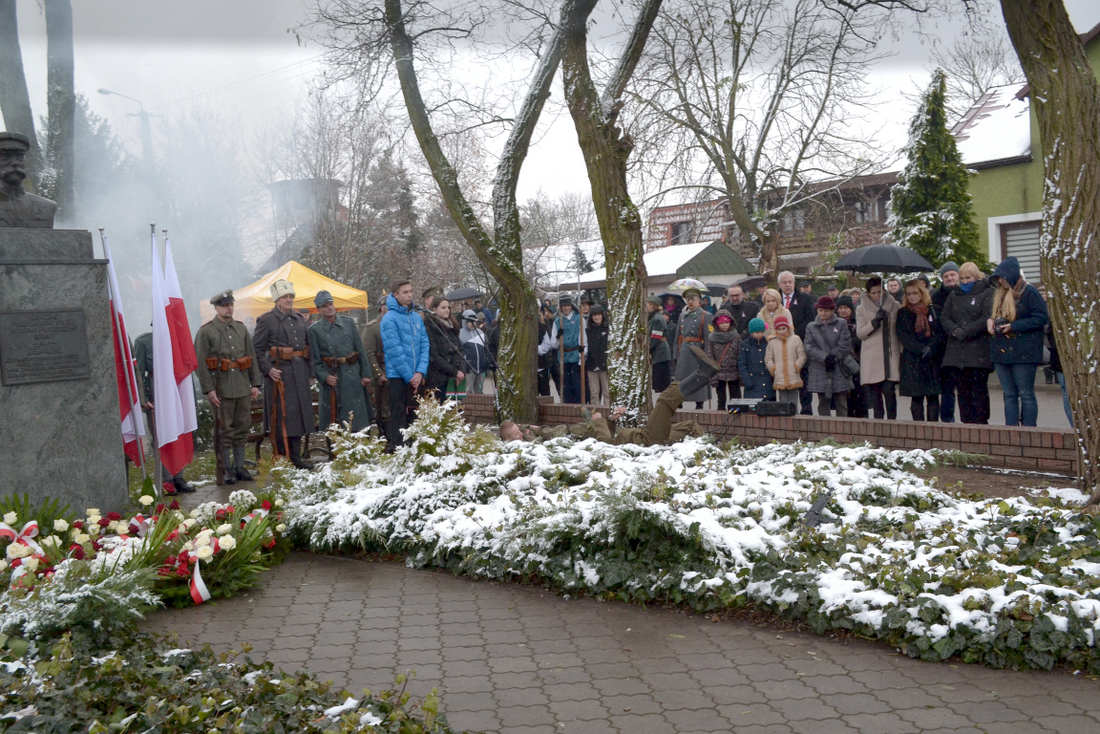 Dalsza część uroczystości odbyła się przed pomnikiem Marszałka Józefa Piłsudskiego. Po odtworzeniu Hymnu Państwowego przybyłych mieszkańców i gości powitał Burmistrz Miasta i Gminy Brok Marek Młyński, który w swoim wystąpieniu podkreślił wyjątkowość tego święta, zwracając uwagę na idee patriotyzmu.