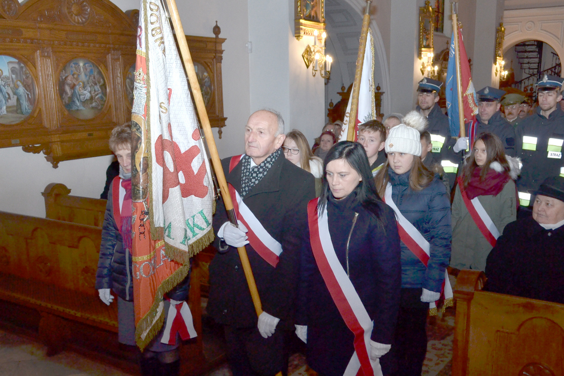 Uroczysty charakter Mszy podkreśliła obecność pocztów sztandarowych na czele z pocztem sztandarowym „Solidarność”, pocztem sztandarowym Ochotniczej Straży Pożarnej w Broku, Zespołu Publicznych Placówek Oświatowych w Broku, a także Grupa Rekonstrukcji Historycznej „Garnizon Ostrów” w mundurach.