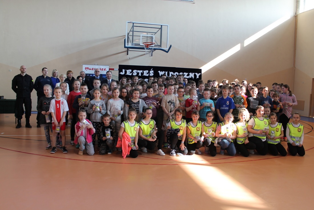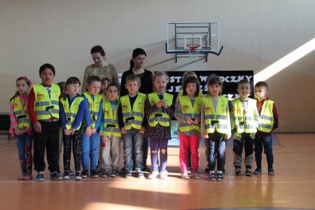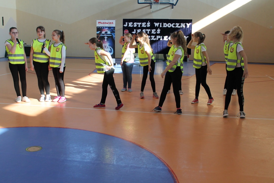 Uczennice klas czwartych i dzieci z grupy „Pszczółek” specjalnie z tej okazji przygotowały piosenki promujące bezpieczeństwo. Wszyscy uczestnicy akcji otrzymali praktyczne zestawy zawierające elementy odblaskowe.